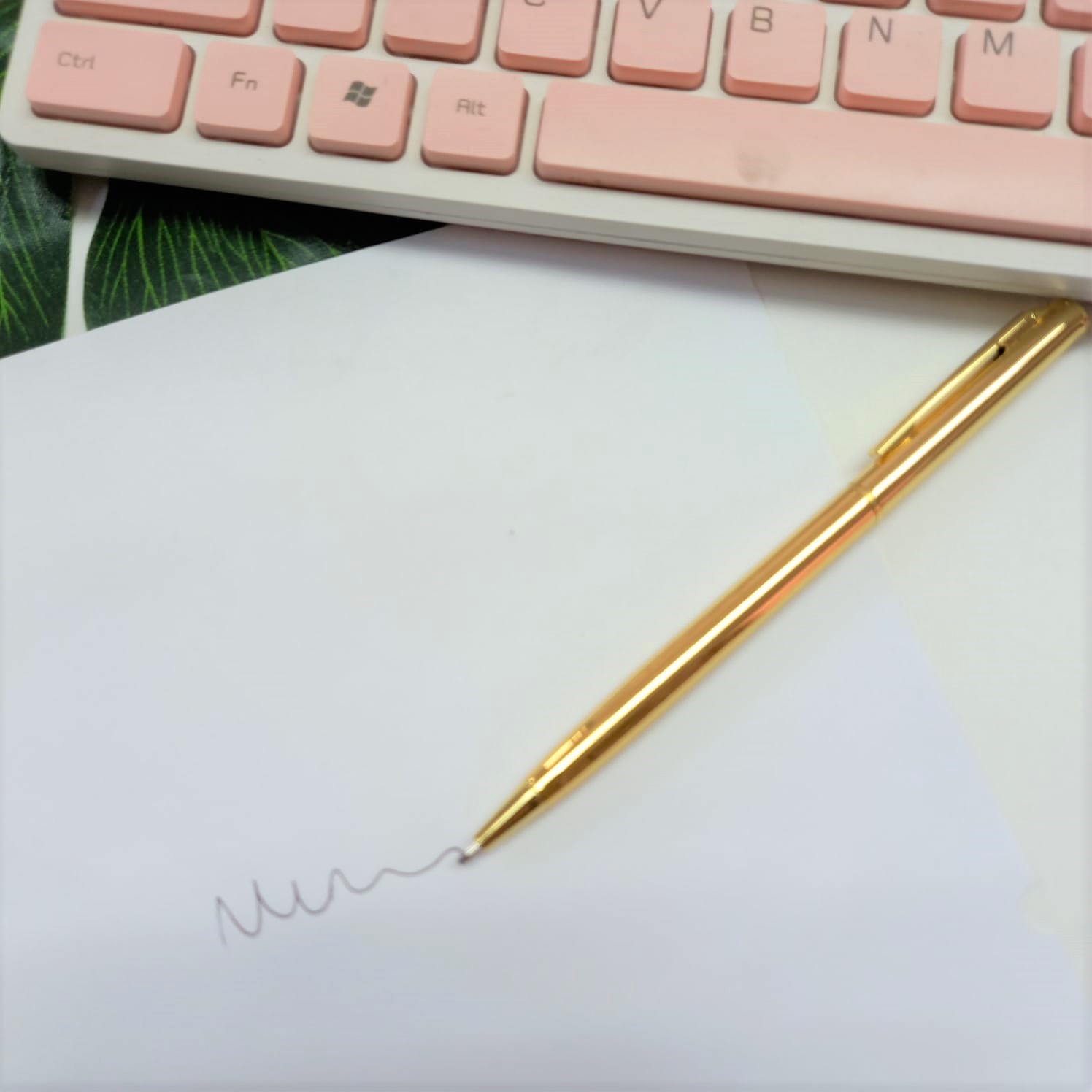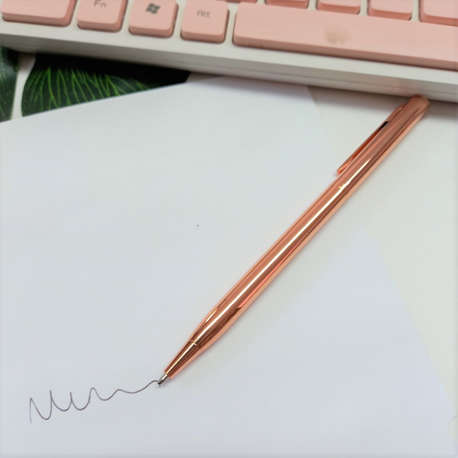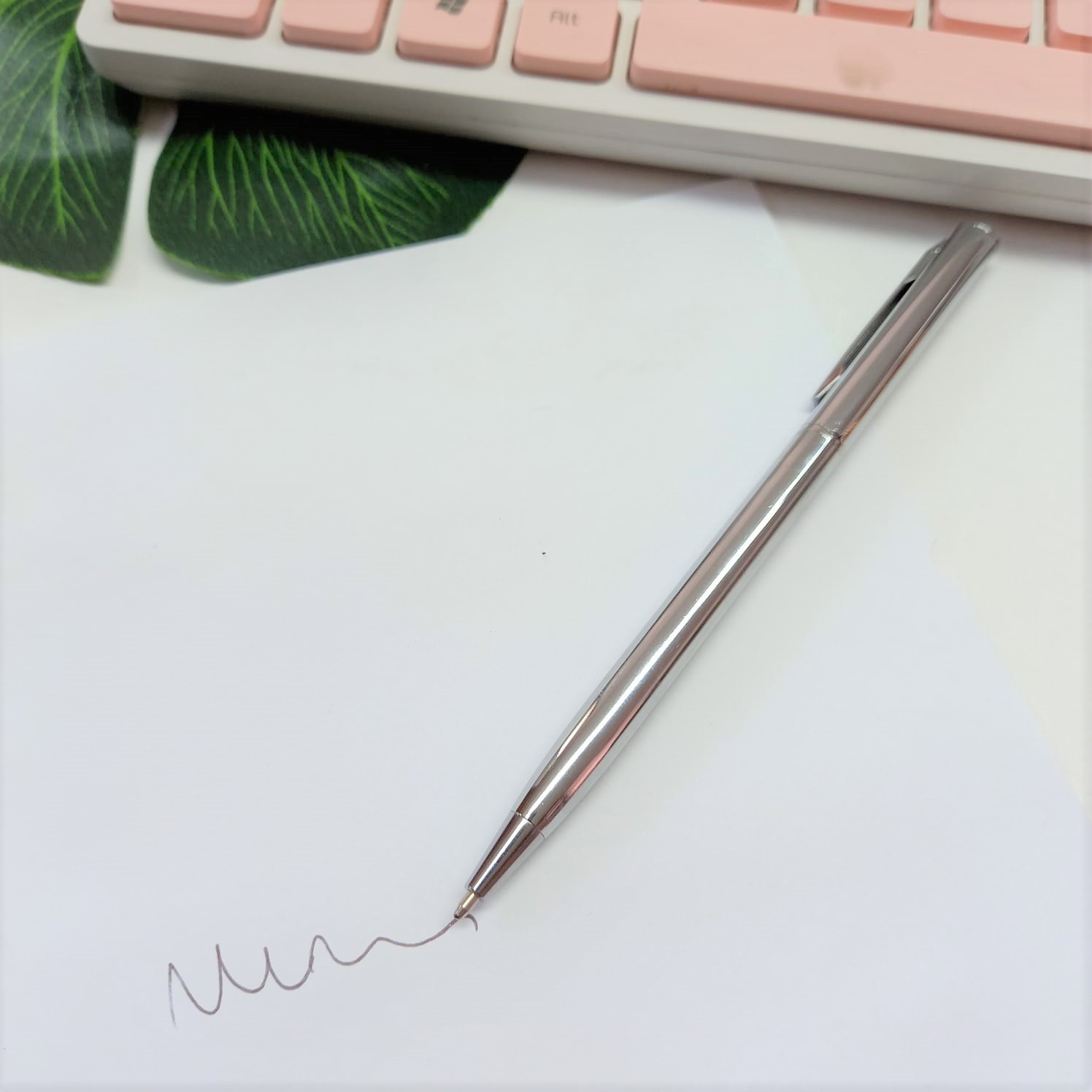 Caneta luxe é uma caneta esferográfica de escrita média e macia, ponta 1.0, com tinta preta, fina e elegante em corpo de metal, perfeita para seu escritório ou para presentear.