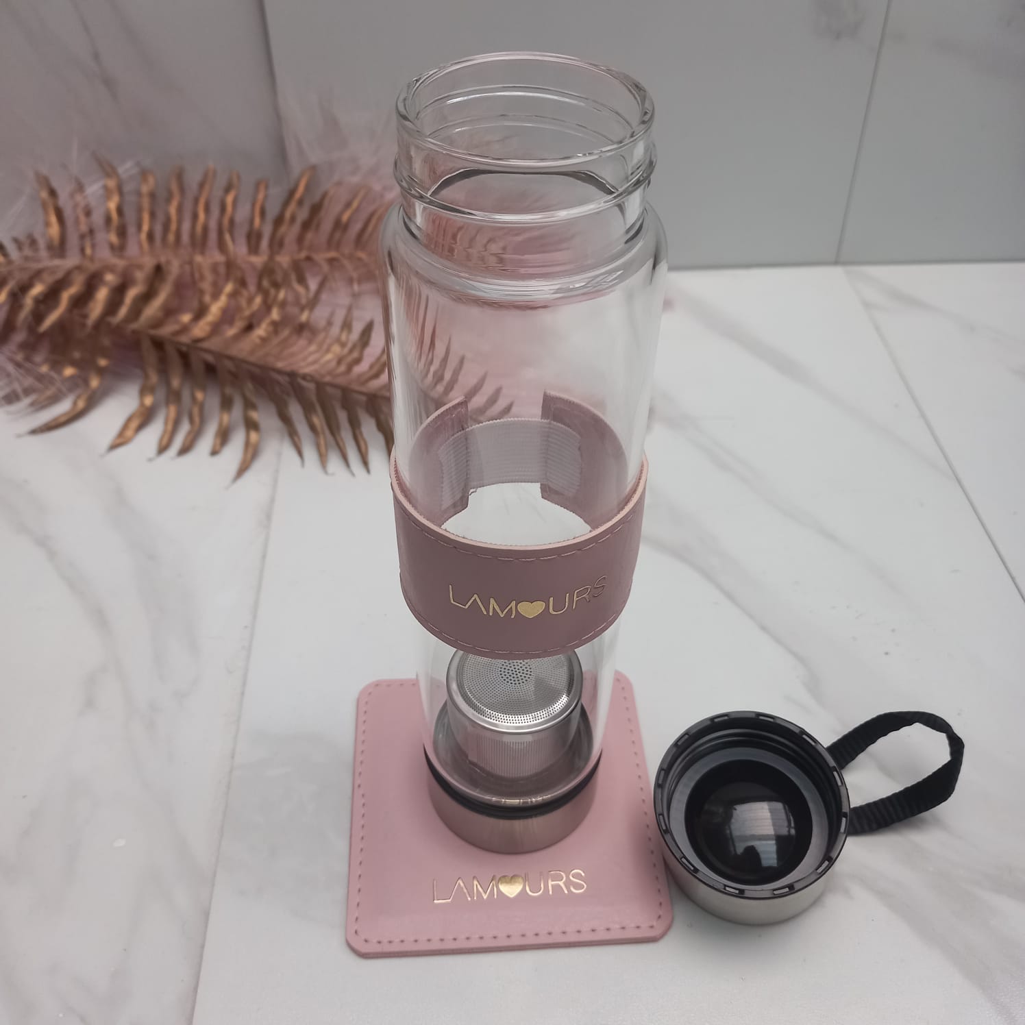 1 garrafa de vidro com infusor