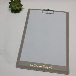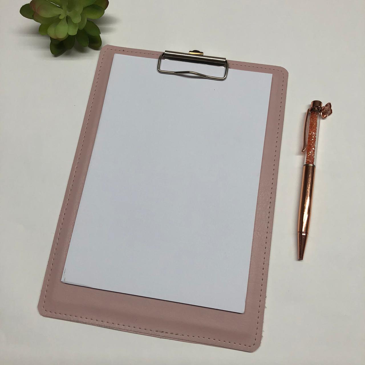 Prancheta A4 feito em material que imita couro, fino e elegante, para dar um charme no seu dia a dia.